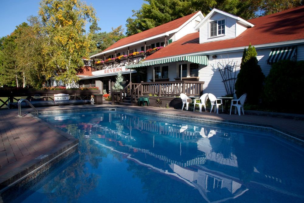 Severn Lodge is known for its classic Canadian lodge atmosphere, featuring traditional cottages and suites surrounded by towering pines and beautiful lake views. The property offers a peaceful retreat where guests can relax on the dock, enjoy waterfront dining, and take in the natural beauty of the surrounding landscape.